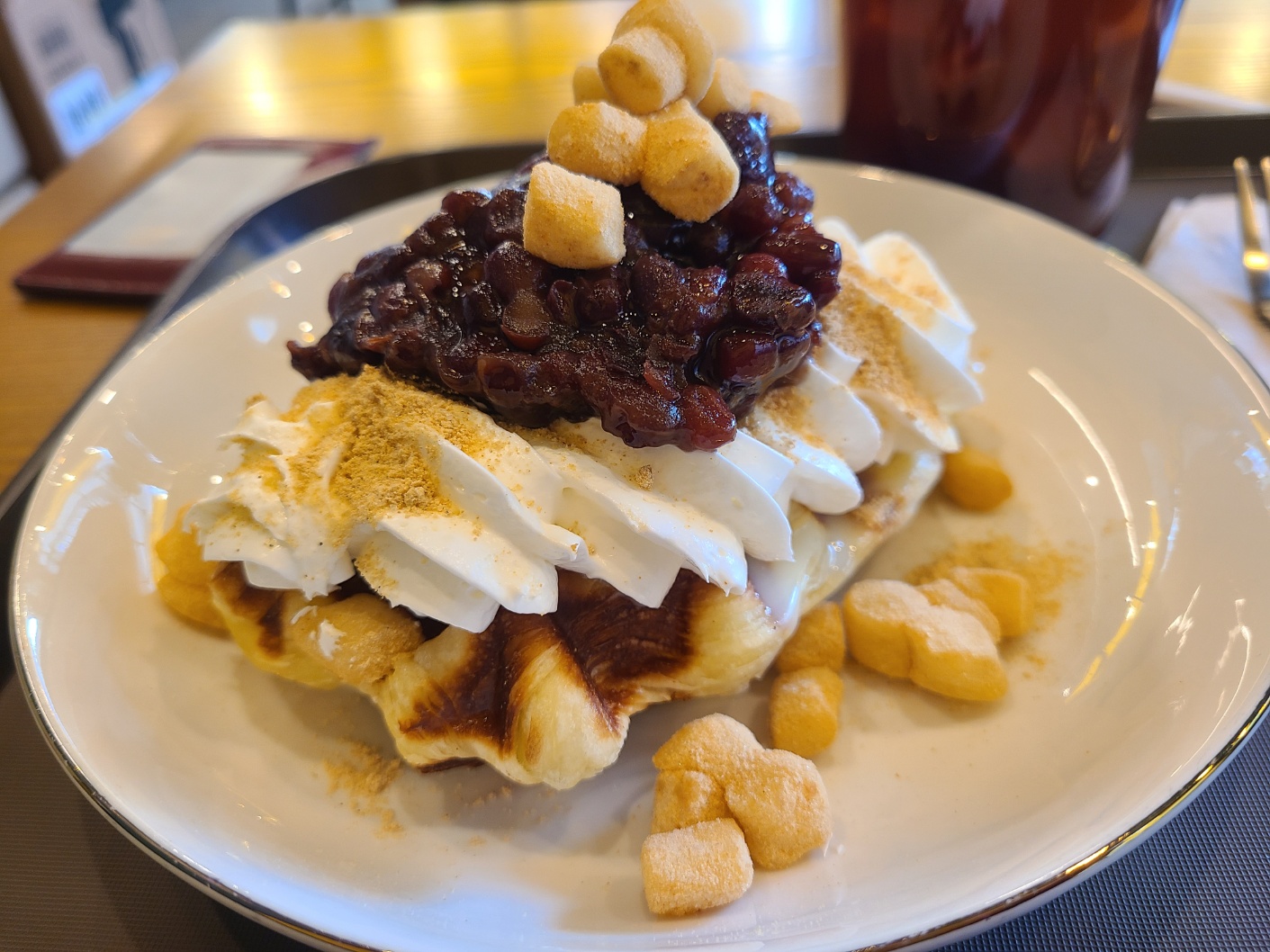 오늘은 팥이 들어간 팥절미크로플을 먹었는데 여기 와플은 다 맛있는거 같다.
